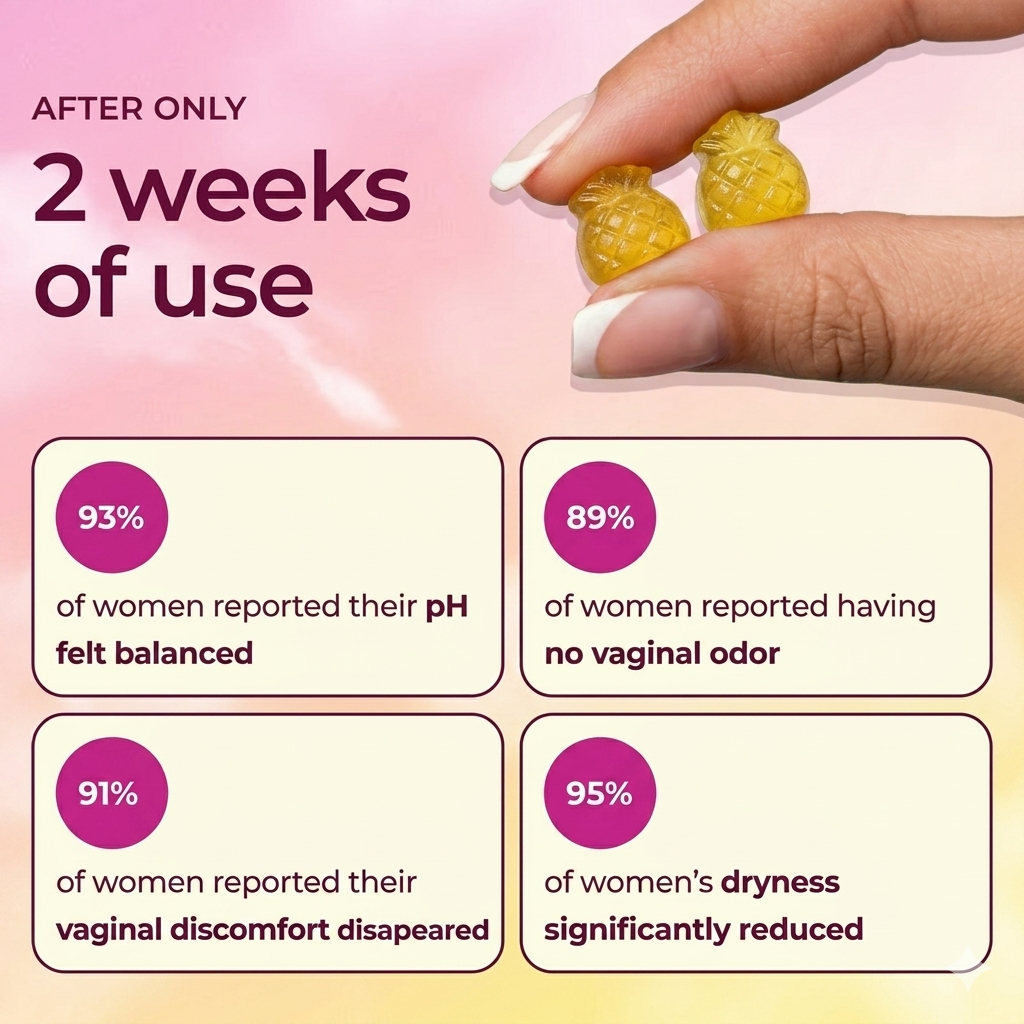 Our formula targets the root cause of imbalance rather than masking symptoms, and thousands of women with recurring BV, yeast infections, odor, and dryness have seen real results within 2–3 weeks of consistent daily use.